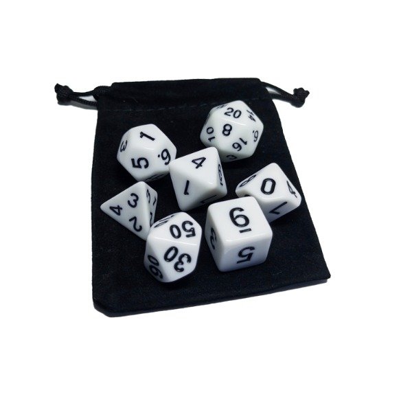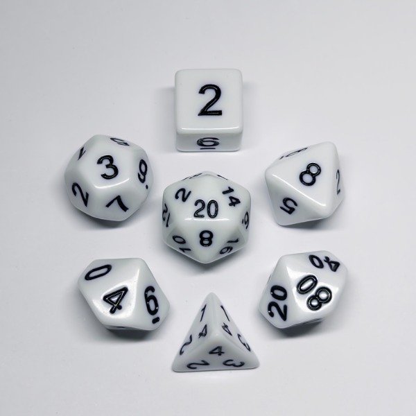 🎲 Prepárate para vivir aventuras épicas con este set completo de 7 dados con un hermoso Color Sólido en tono Blanco Puro y números Negros, diseñado para Dungeons & Dragons, Pathfinder y otros juegos de rol.