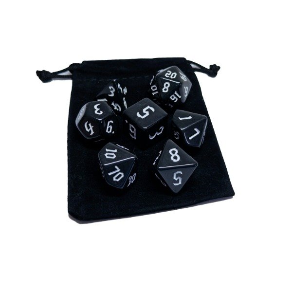 🎲 Prepárate para vivir aventuras épicas con este set completo de 7 dados con un hermoso Color Sólido Negro y números Blancos, diseñado para Dungeons & Dragons, Pathfinder y otros juegos de rol.