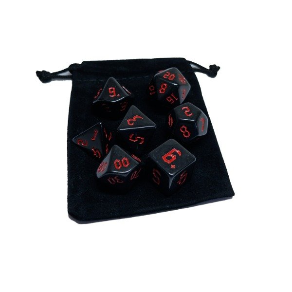 🎲 Prepárate para vivir aventuras épicas con este set completo de 7 dados con un hermoso Color Sólido Negro y números Rojos, diseñado para Dungeons & Dragons, Pathfinder y otros juegos de rol.